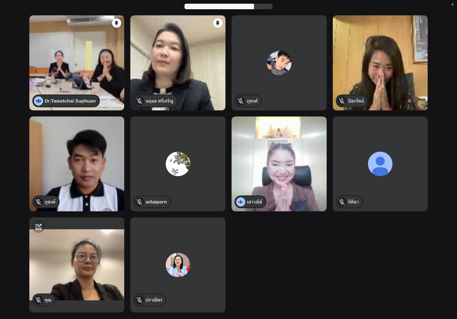 The meeting was conducted online via Google Meet with the Nakhon Pathom Campus, where Asst. Prof. Dr. Duangphon Saengthong, Assistant to the President for Special Affairs, presided over the meeting. The session aimed to monitor progress and exchange approaches to improving asset management and service delivery within the units to ensure effectiveness and alignment with the university’s goals.